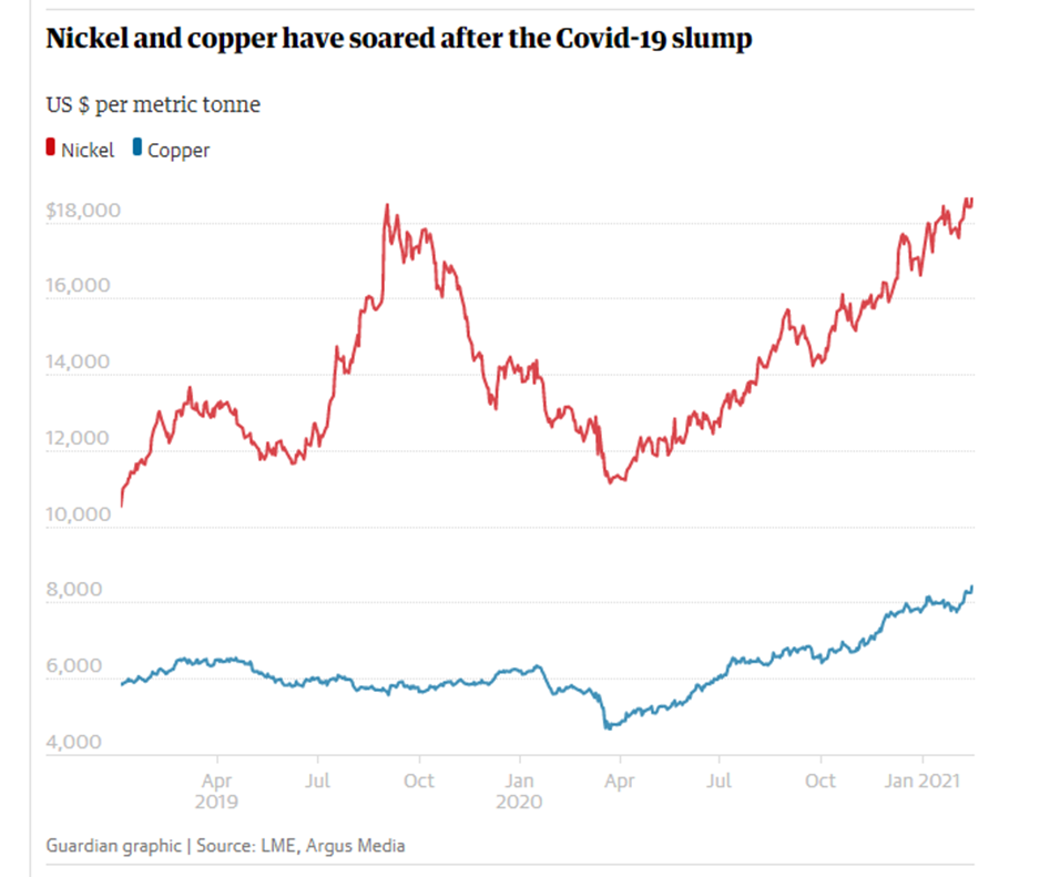 Read more at: https://www.theguardian.com/business/2021/feb/17/mining-boom-commodity-supercycle-copper-nickel-price-investments-clean-energy