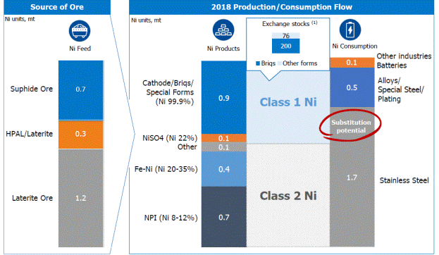 This Tsingshan deal effectively sees the company promise to fill class 1 demand with class 2 supply, possibly removing the price gap and supply concerns. Nickel matte, which Tsingshan is selling, is the last step in a lot of processing that sees Tsingshan’s laterite ore turned to nickel pig iron, then into nickel matte, which can be then processed into pure nickel as needed by the battery makers. This isn’t just sending the ore around the plant a few more times, this process will add cost and the carbon footprint compared to class 1 nickel supply.